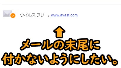 ウィルス対策としてAVASTを使っていると、E-Mailを送信するたびに末尾に`ウイルス フリー。 www.avast.com`が付く。
